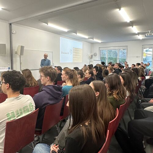 Politische Mitbestimmung beginnt bei uns schon während der Ausbildung. In Zusammenarbeit mit dem unabhängigen Verein Discuss it schaffen wir zweimal jährlich eine Plattform, auf der unsere Lernenden aktuelle Themen hinterfragen, kontroverse Standpunkte kennenlernen und ihre eigenen Fragen einbringen können.